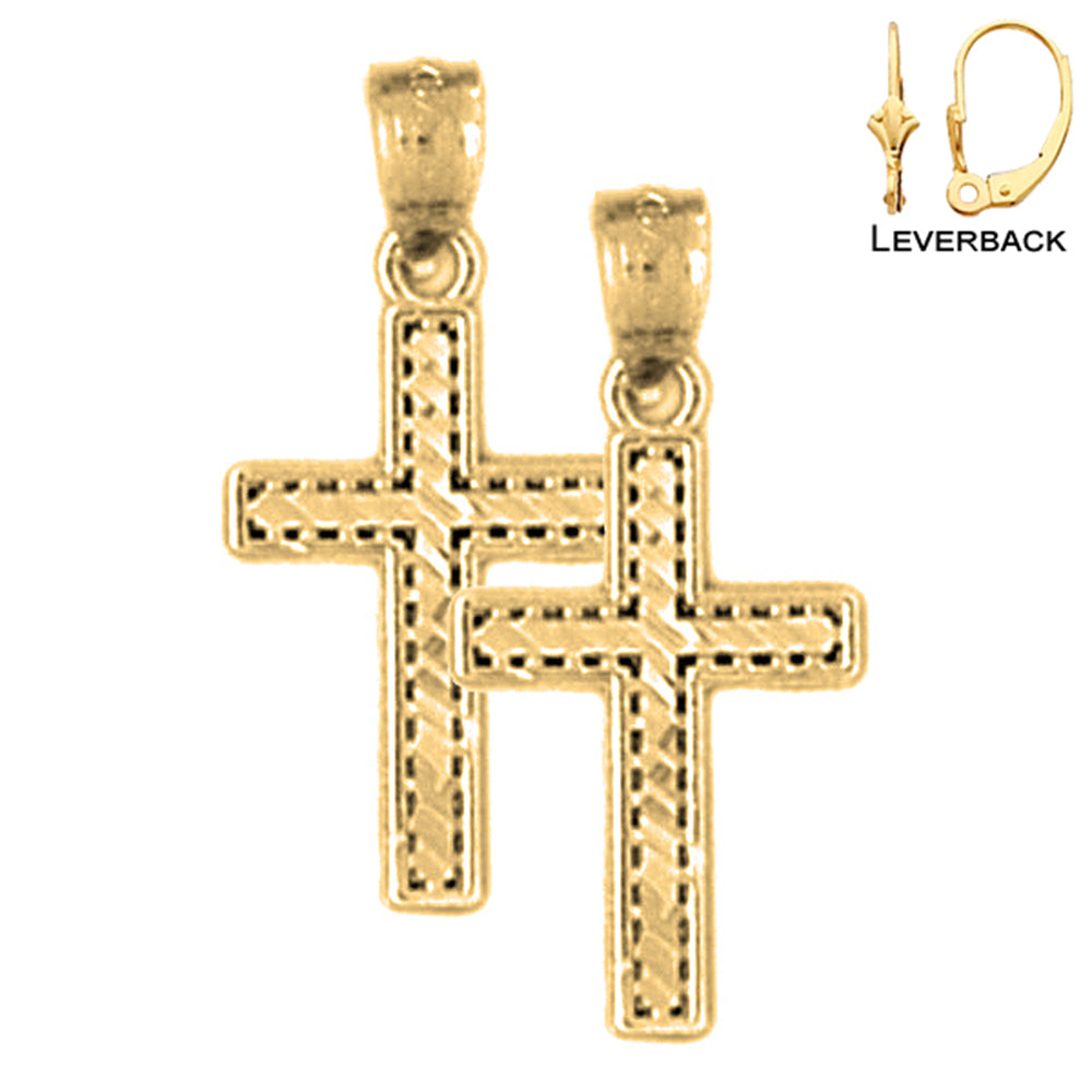 Sterling Silver 21mm Latin Cross Earrings (White or Yellow Gold Plated)
