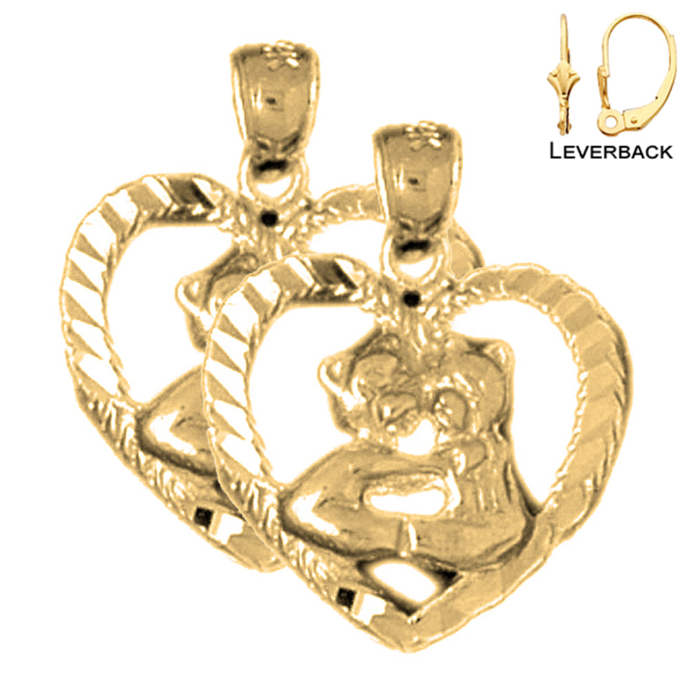 Sterling Silver 21mm Teddy Bear In Heart Earrings (White or Yellow Gold Plated)