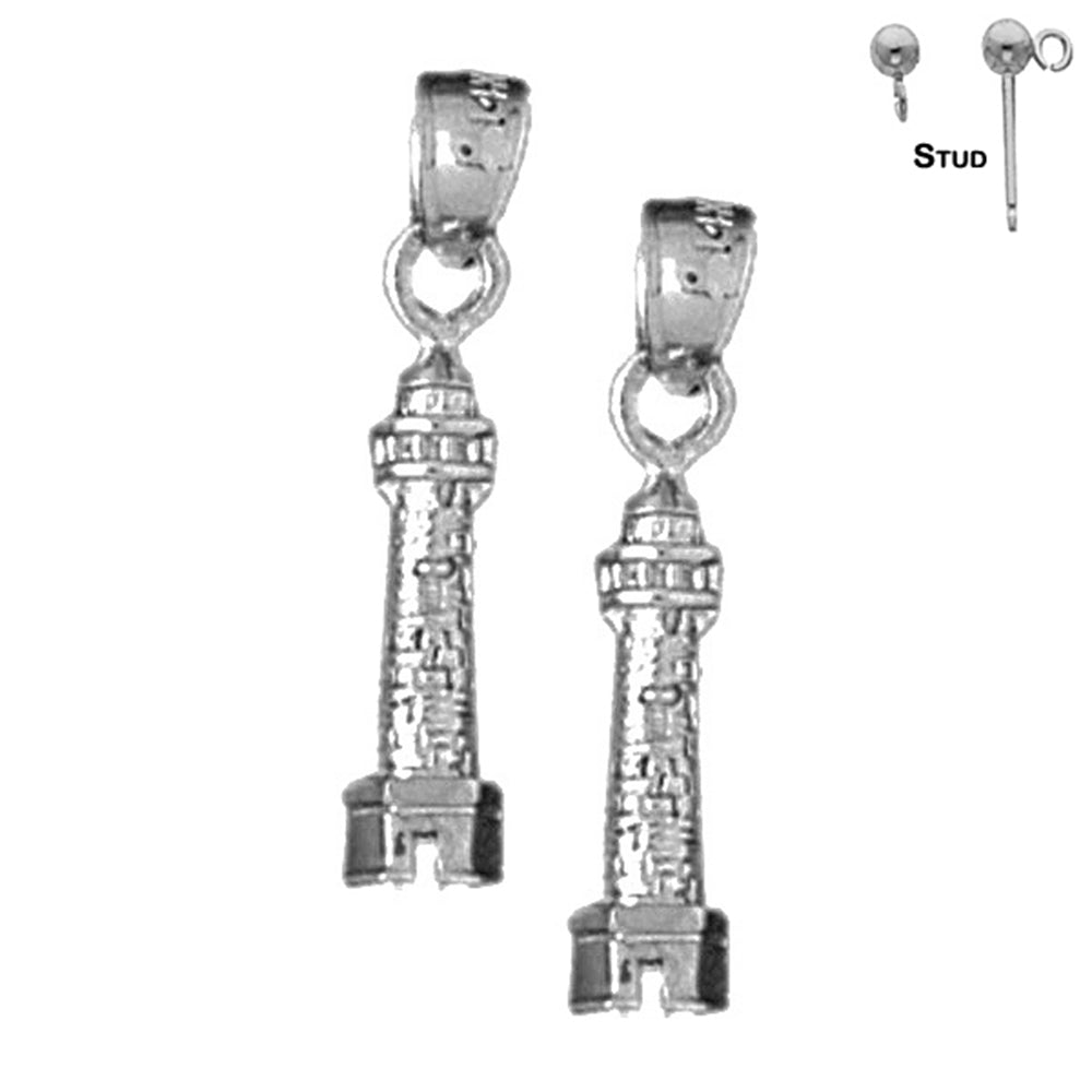 Sterling Silver 22mm 3D Lighthouse Earrings