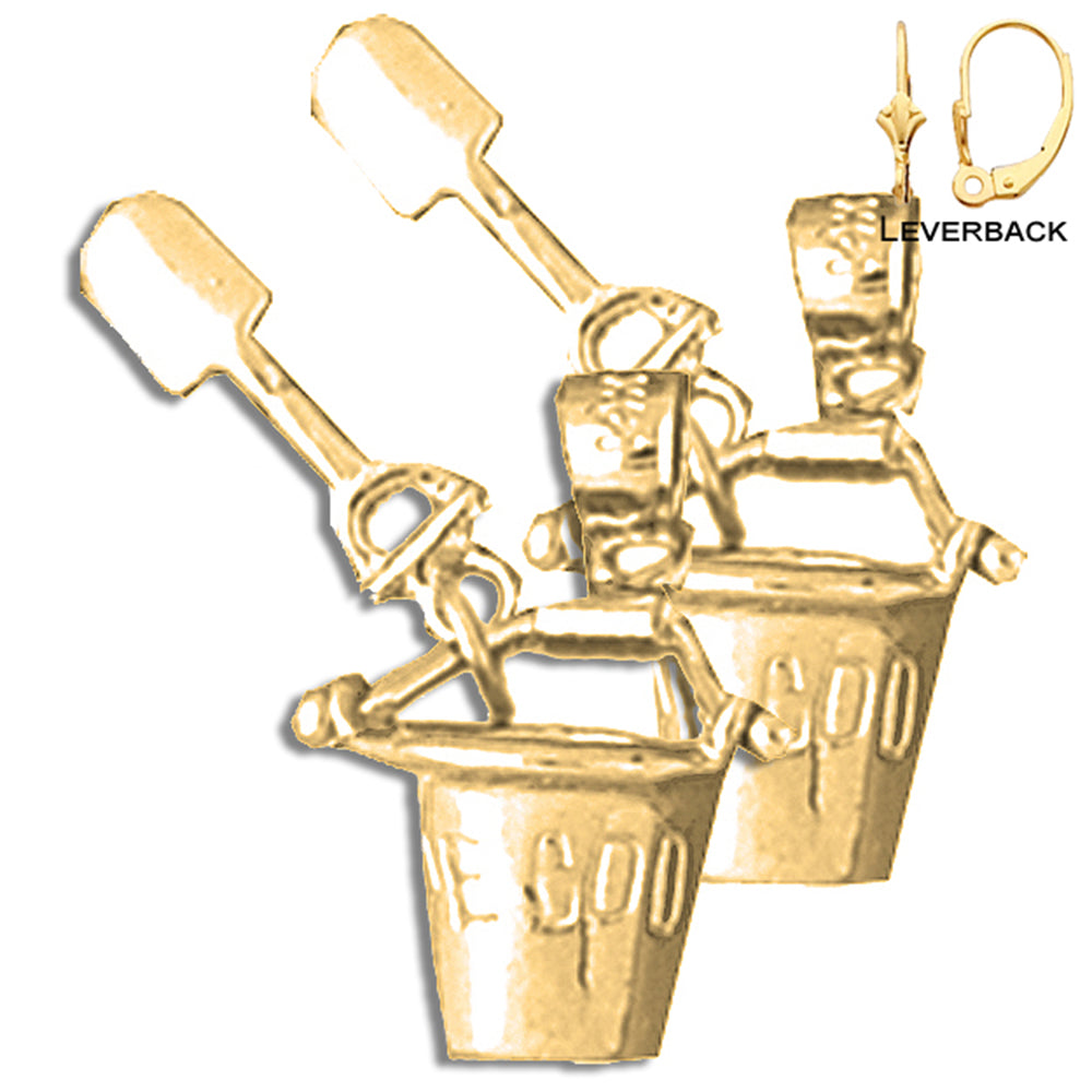 Sterling Silver 22mm Cape Cod Pail And Shovel Earrings (White or Yellow Gold Plated)