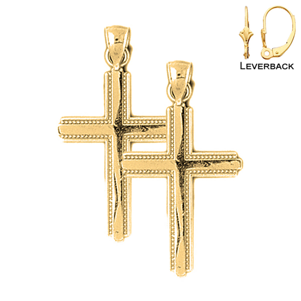 Sterling Silver 22mm Latin Cross Earrings (White or Yellow Gold Plated)