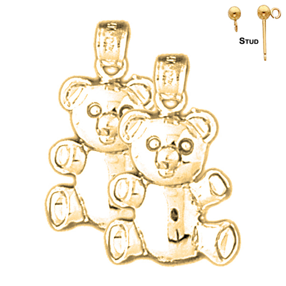 Yellow Gold-plated Silver 22mm Teddy Bear Earrings