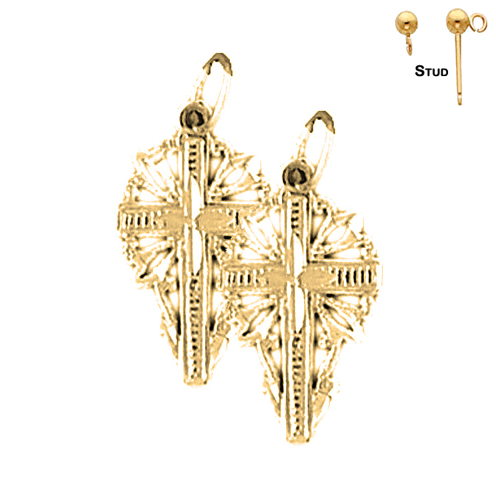 Sterling Silver 22mm Vine Cross Earrings (White or Yellow Gold Plated)