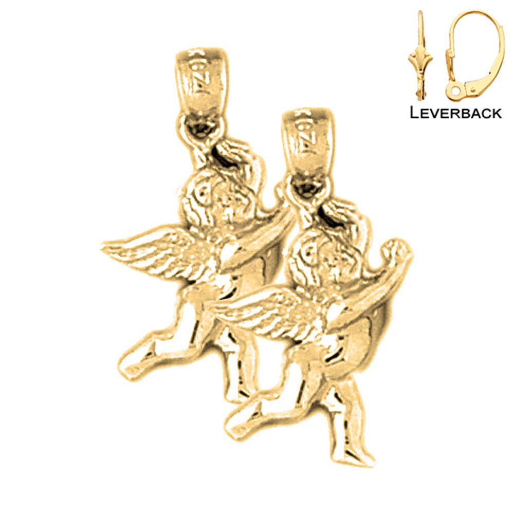 Yellow Gold-plated Silver 23mm Angel 3D Earrings