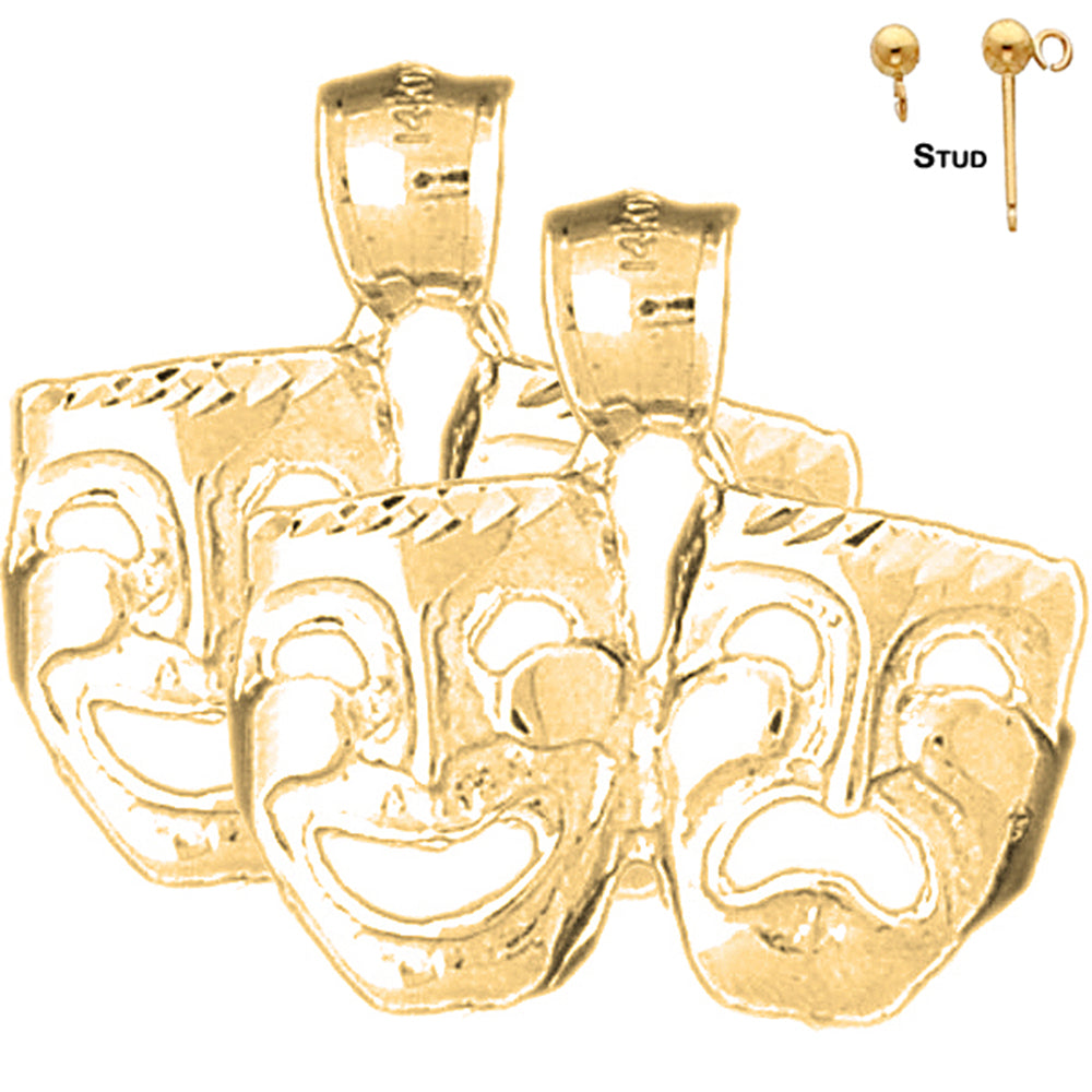 Sterling Silver 23mm Drama Mask, Laugh Now, Cry Later Earrings (White or Yellow Gold Plated)