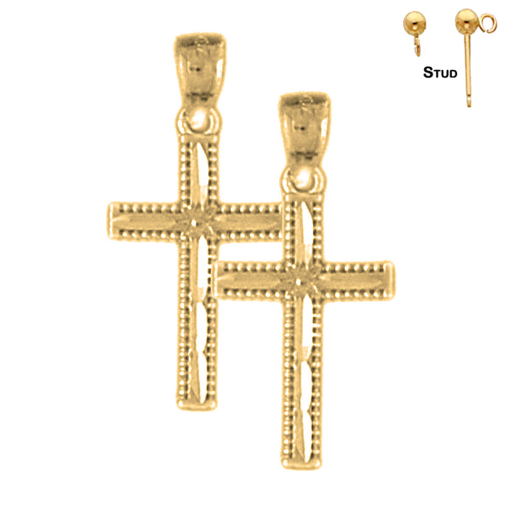Yellow Gold-plated Silver 23mm Latin Cross Earrings