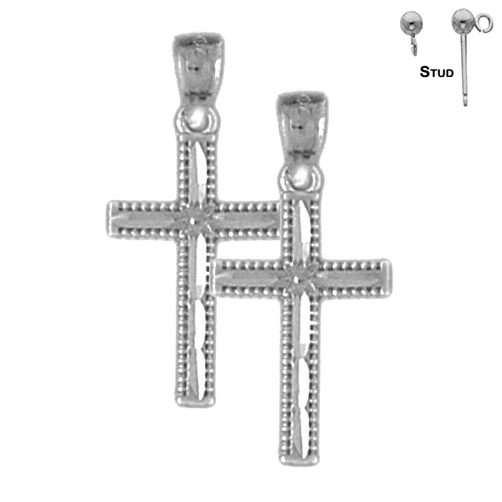 Sterling Silver 23mm Latin Cross Earrings (White or Yellow Gold Plated)