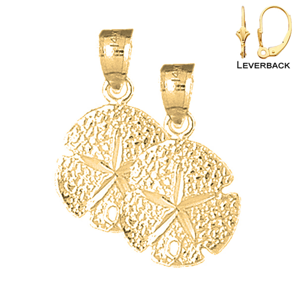 Sterling Silver 23mm Sand Dollar Earrings (White or Yellow Gold Plated)