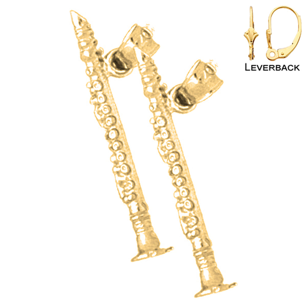 Sterling Silver 24mm 3D Clarinet Earrings (White or Yellow Gold Plated)