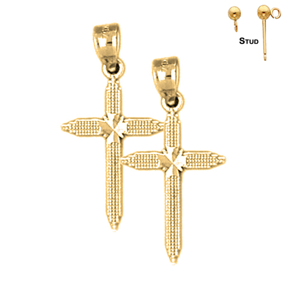 Yellow Gold-plated Silver 24mm Latin Cross Earrings