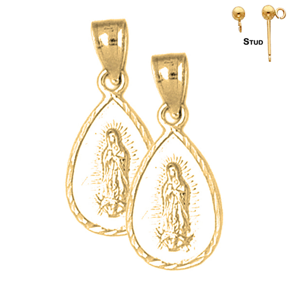 Yellow Gold-plated Silver 24mm Our Lady Guadalupe Earrings