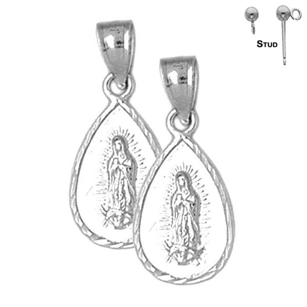 Sterling Silver 24mm Our Lady Guadalupe Earrings (White or Yellow Gold Plated)