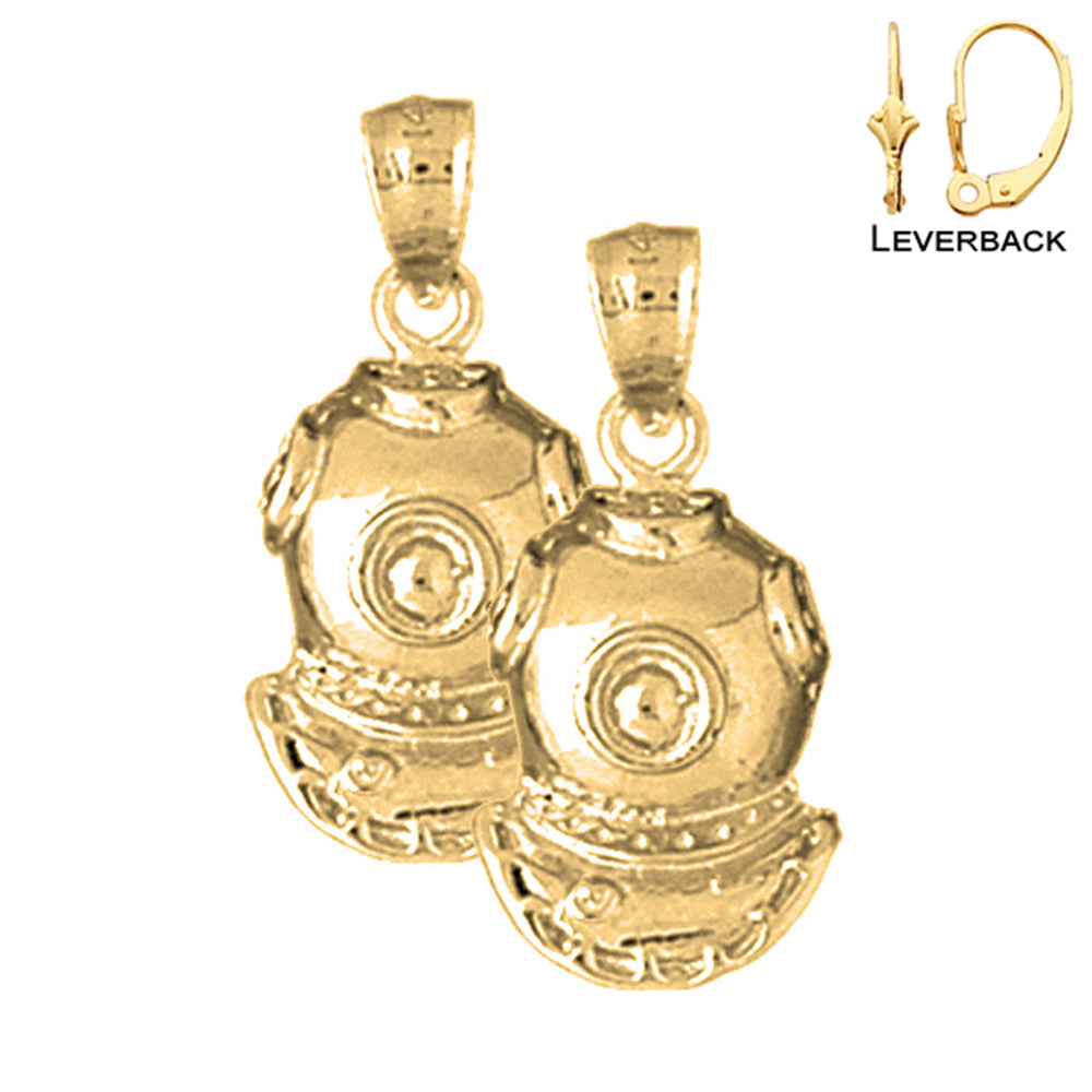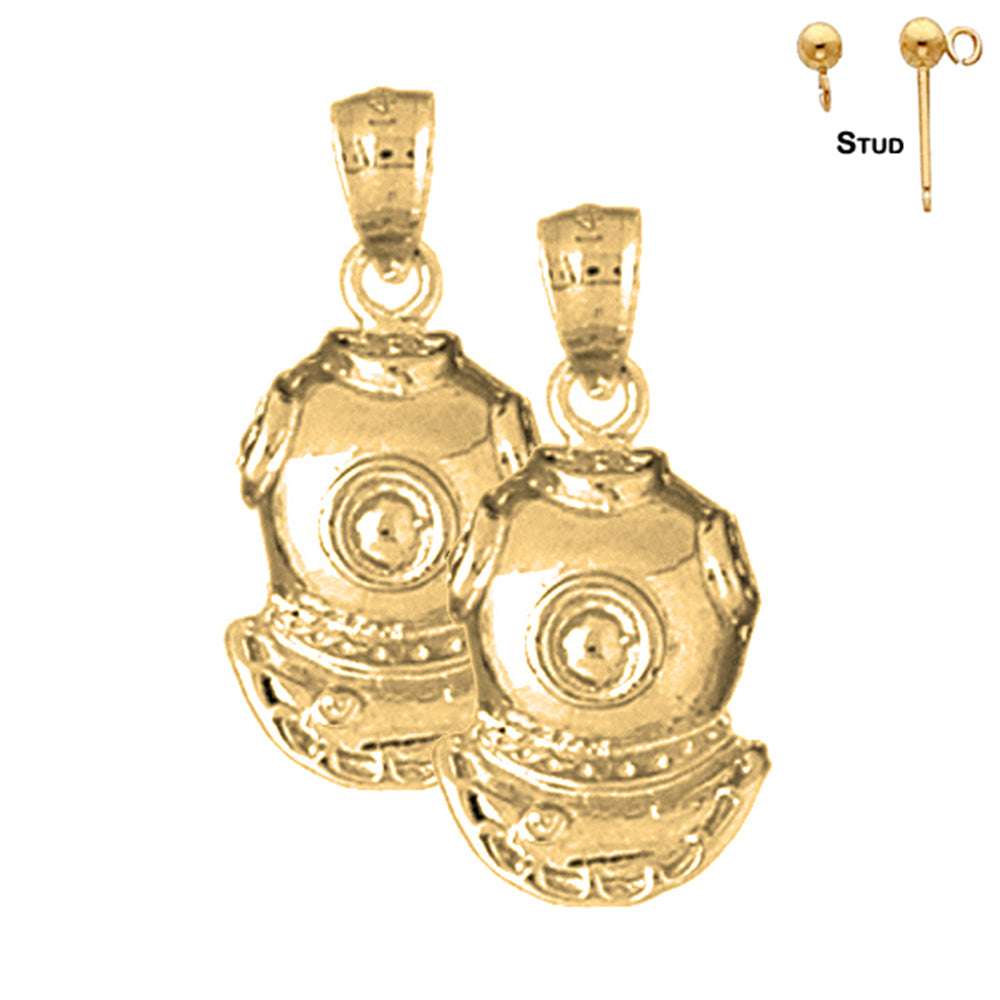 Yellow Gold-plated Silver 25mm Diving Helmet Earrings