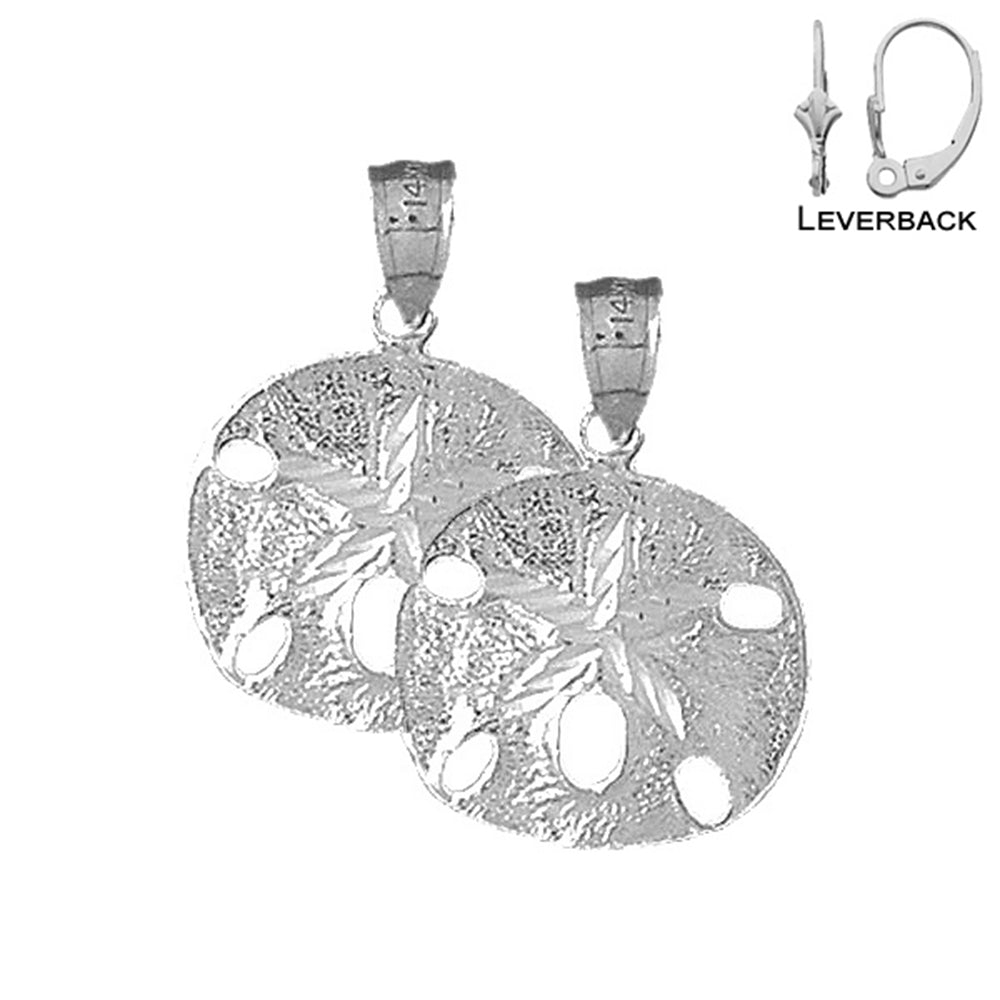 Sterling Silver 25mm Sand Dollar Earrings (White or Yellow Gold Plated)