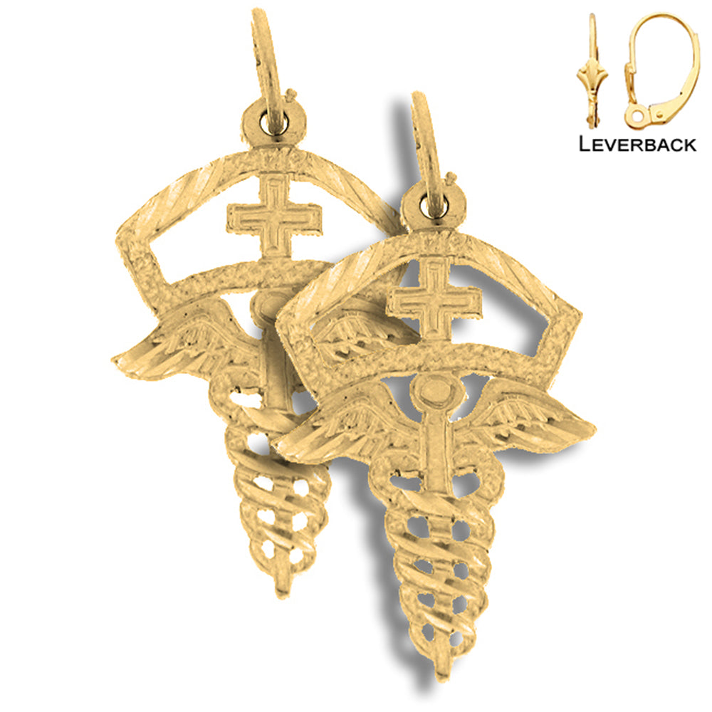 Sterling Silver 26mm Caduceus Earrings (White or Yellow Gold Plated)