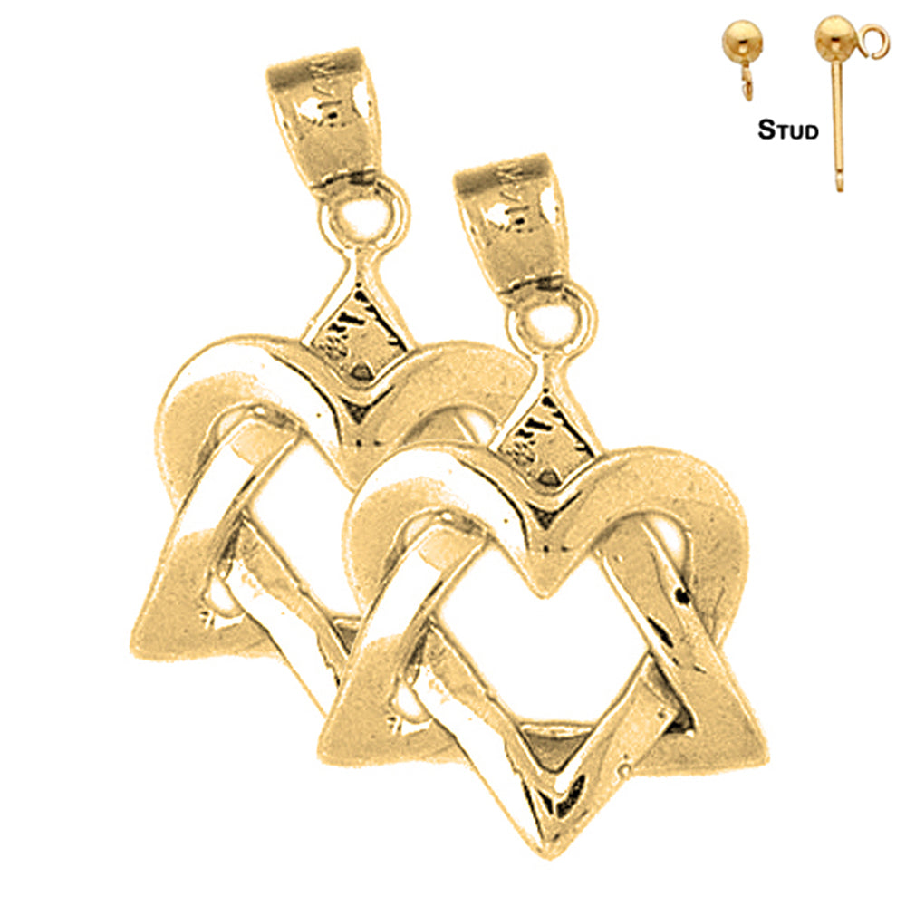 Yellow Gold-plated Silver 26mm Star of David with Heart Earrings