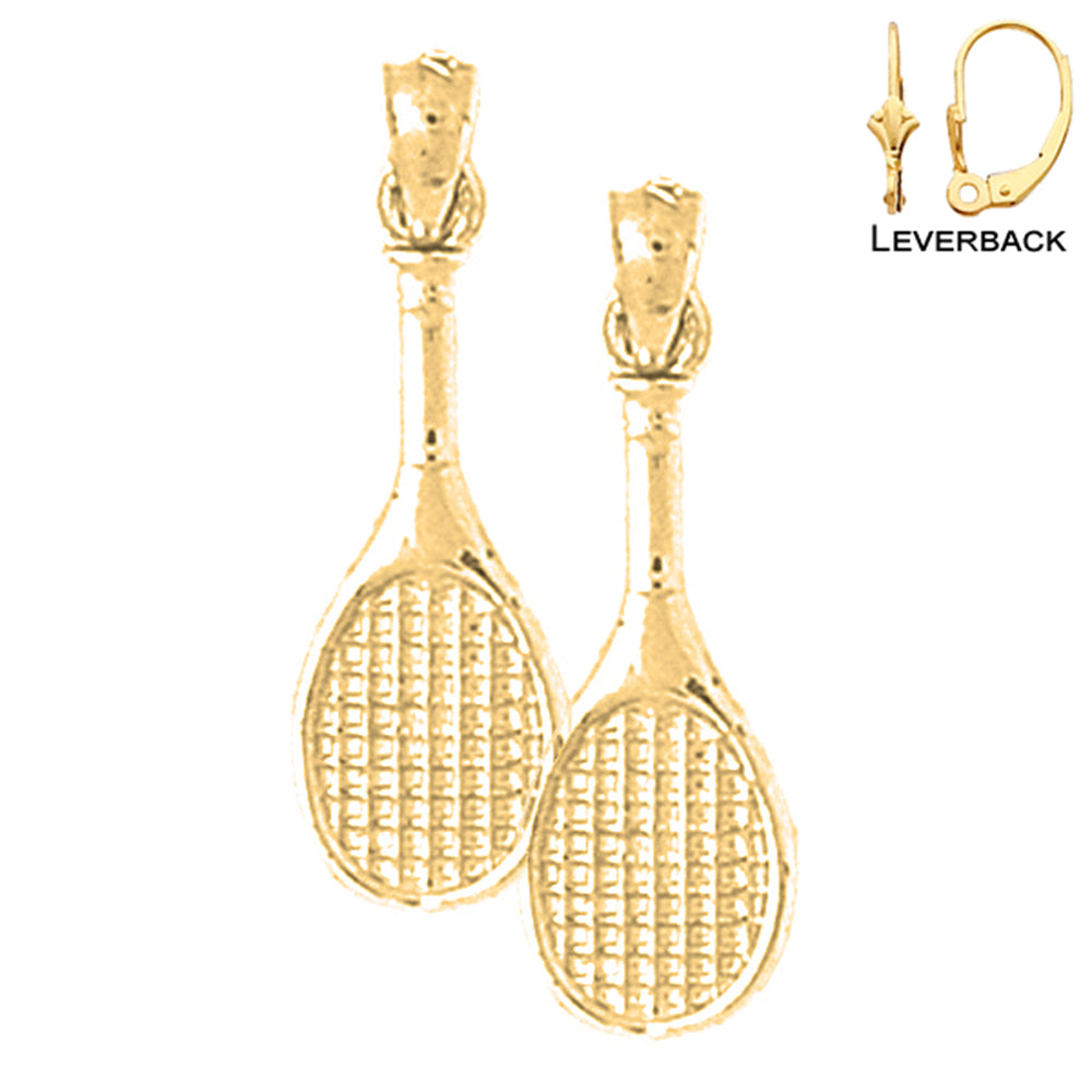 Sterling Silver 26mm Tennis Racquets Earrings (White or Yellow Gold Plated)