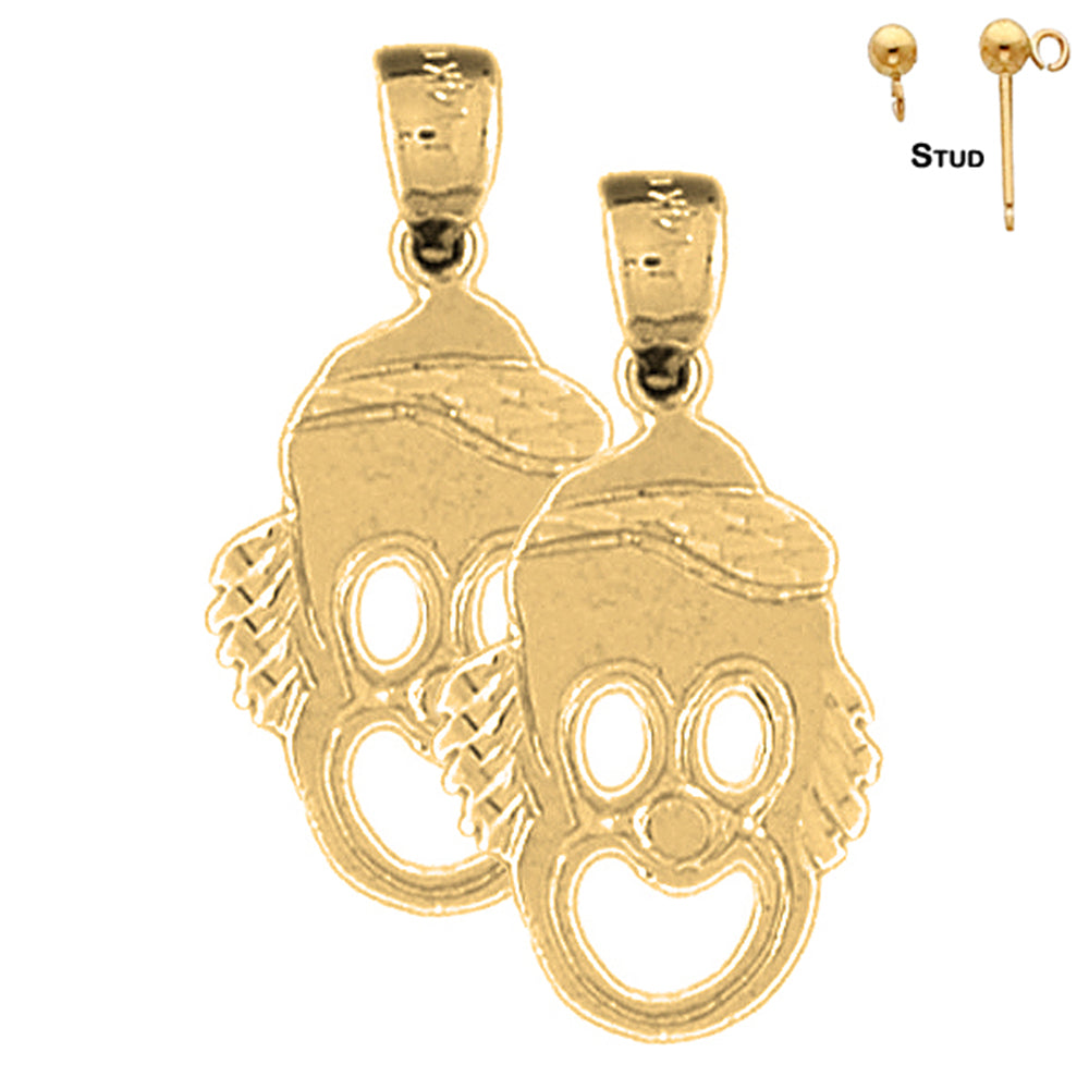 Yellow Gold-plated Silver 27mm Clown Earrings