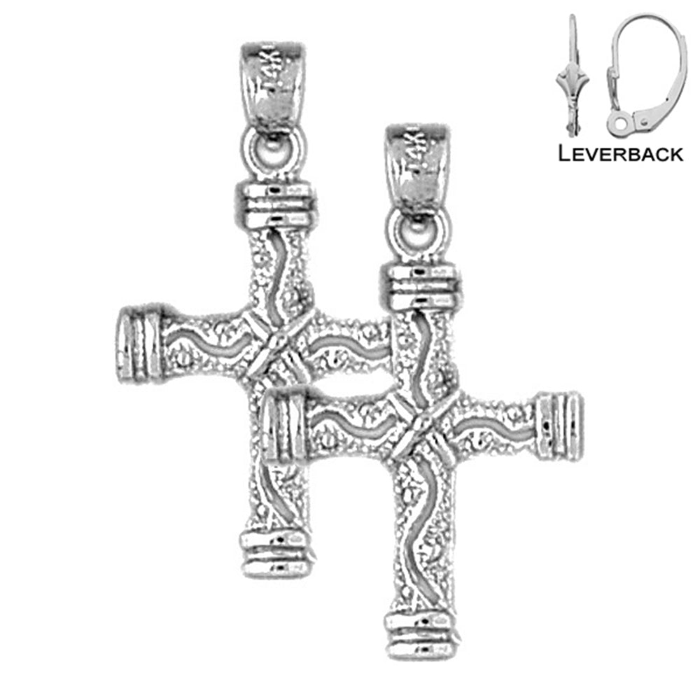 Sterling Silver 27mm Roped Cross Earrings (White or Yellow Gold Plated)