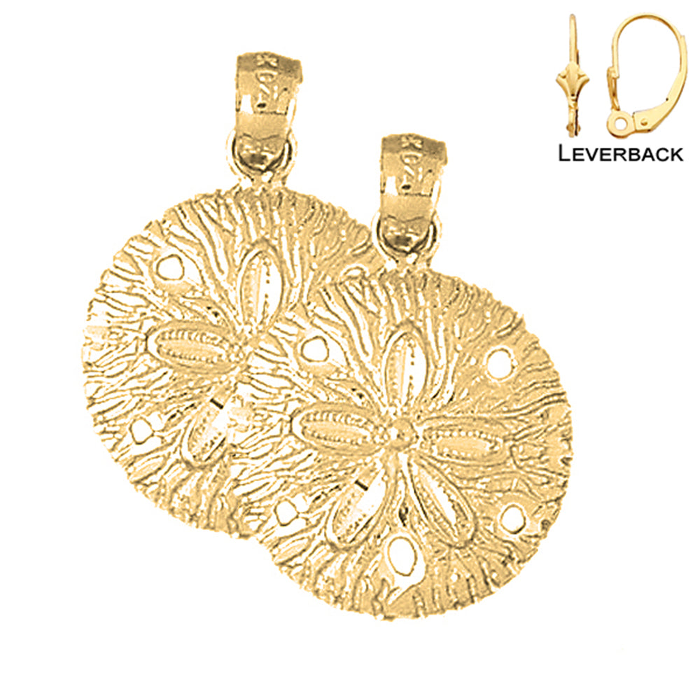 Sterling Silver 27mm Sand Dollar Earrings (White or Yellow Gold Plated)