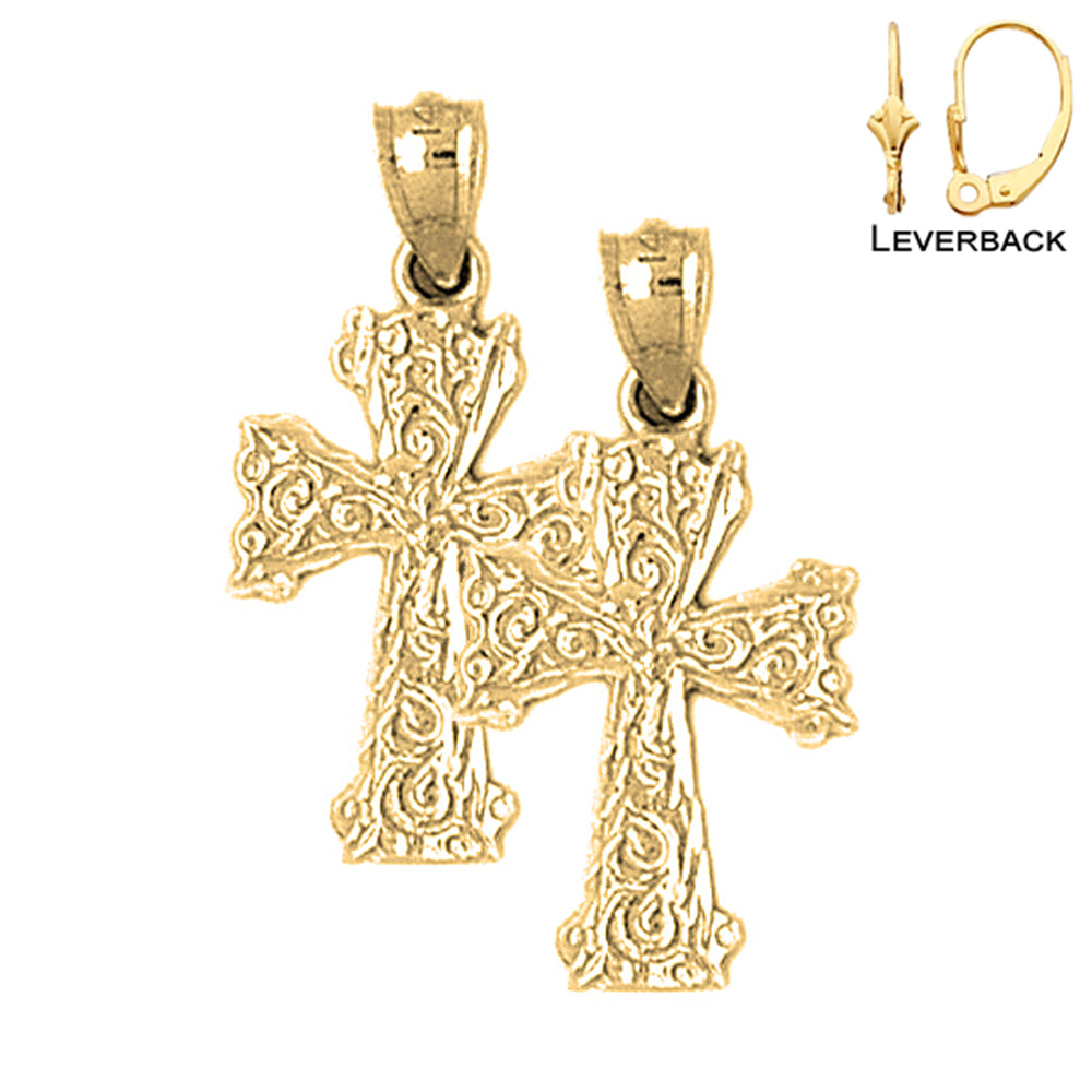 Sterling Silver 27mm Vine Cross Earrings (White or Yellow Gold Plated)