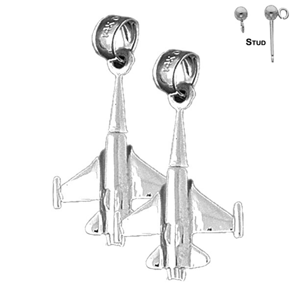 Sterling Silver 29mm 3D Airplane Earrings (White or Yellow Gold Plated)