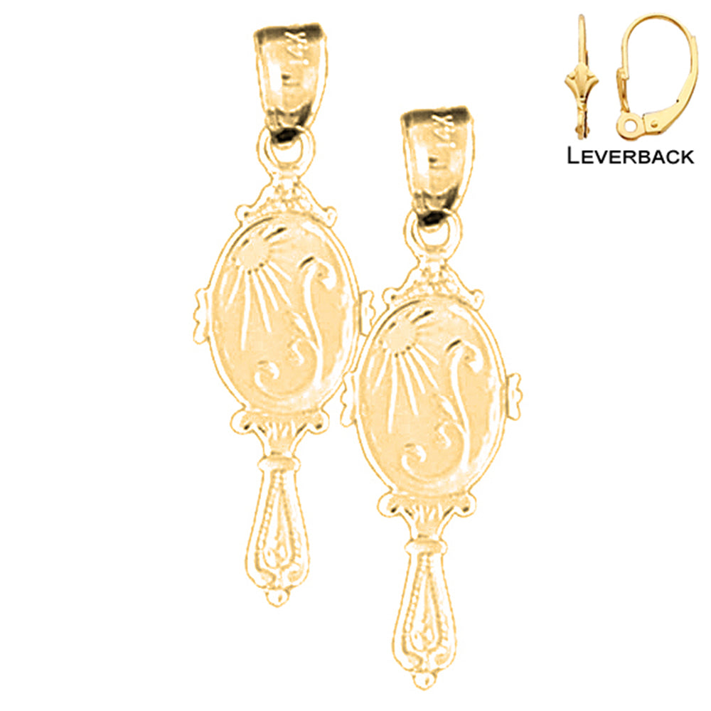 Sterling Silver 29mm 3D Vanity Mirror Earrings (White or Yellow Gold Plated)