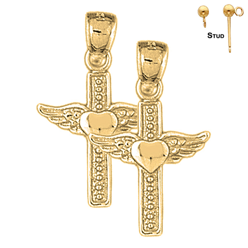 Sterling Silver 29mm Heart & Wings Cross Earrings (White or Yellow Gold Plated)
