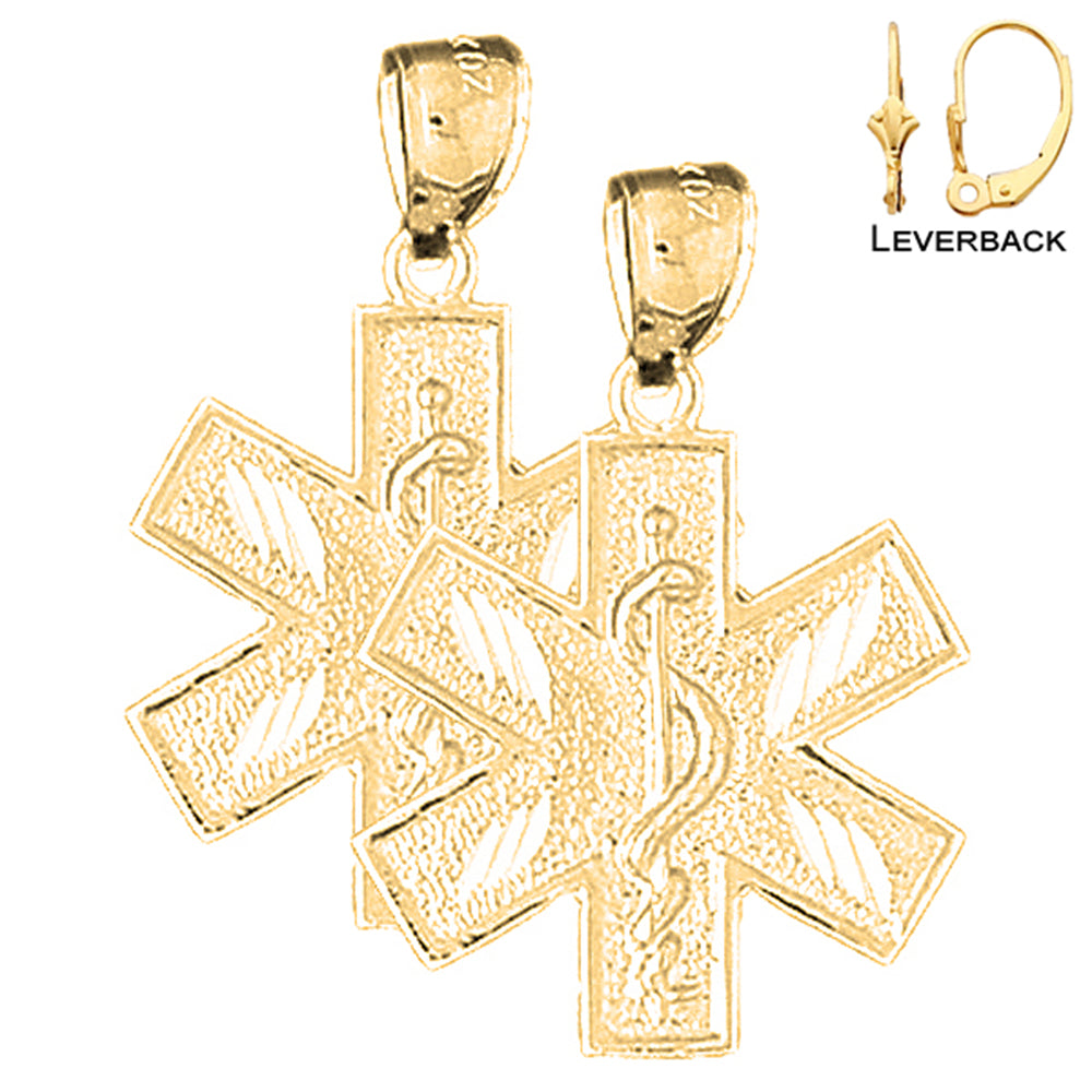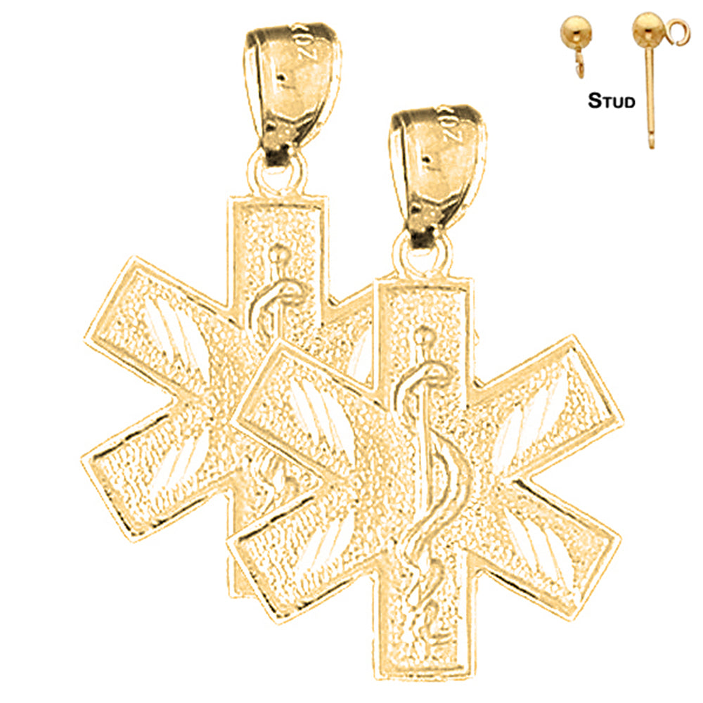 Sterling Silver 29mm Medical Alert Caduceus Earrings (White or Yellow Gold Plated)