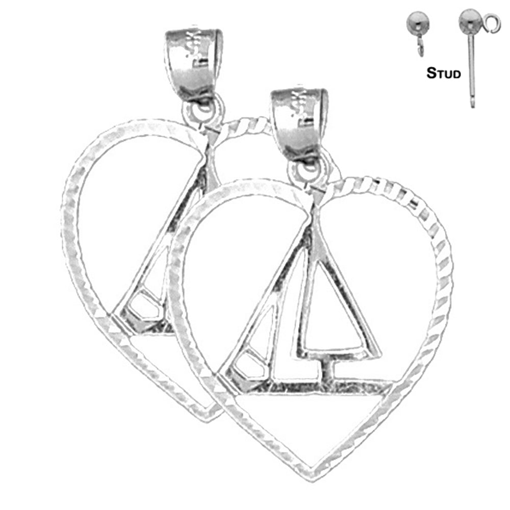 Sterling Silver 29mm Sailboat Earrings (White or Yellow Gold Plated)