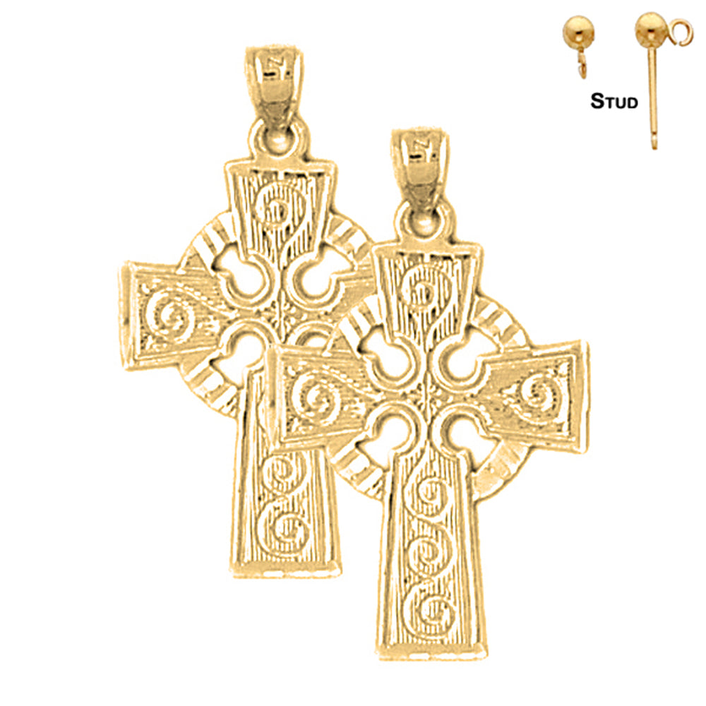 Yellow Gold-plated Silver 30mm Celtic Cross Earrings