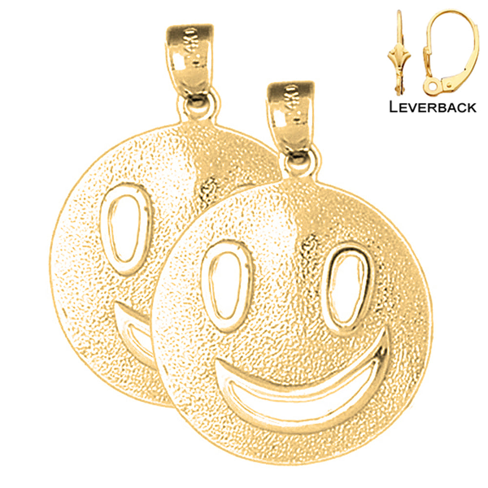 Yellow Gold-plated Silver 30mm Happy Face Earrings