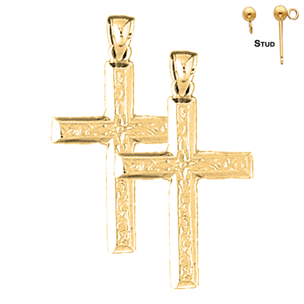 Yellow Gold-plated Silver 30mm Latin Cross Earrings