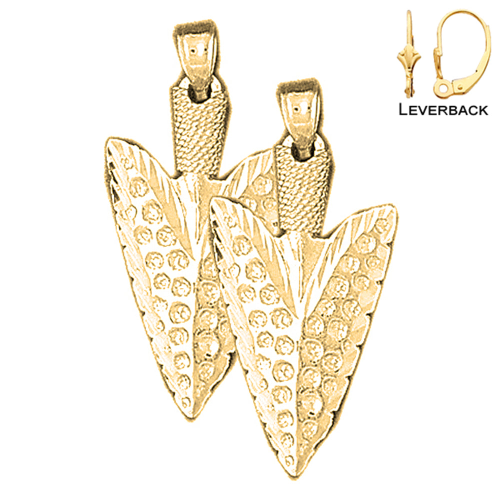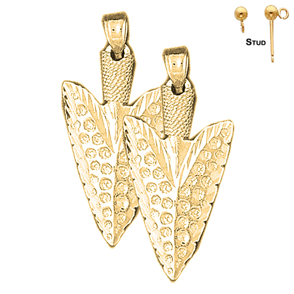Sterling Silver 31mm 3D Arrowhead Earrings (White or Yellow Gold Plated)