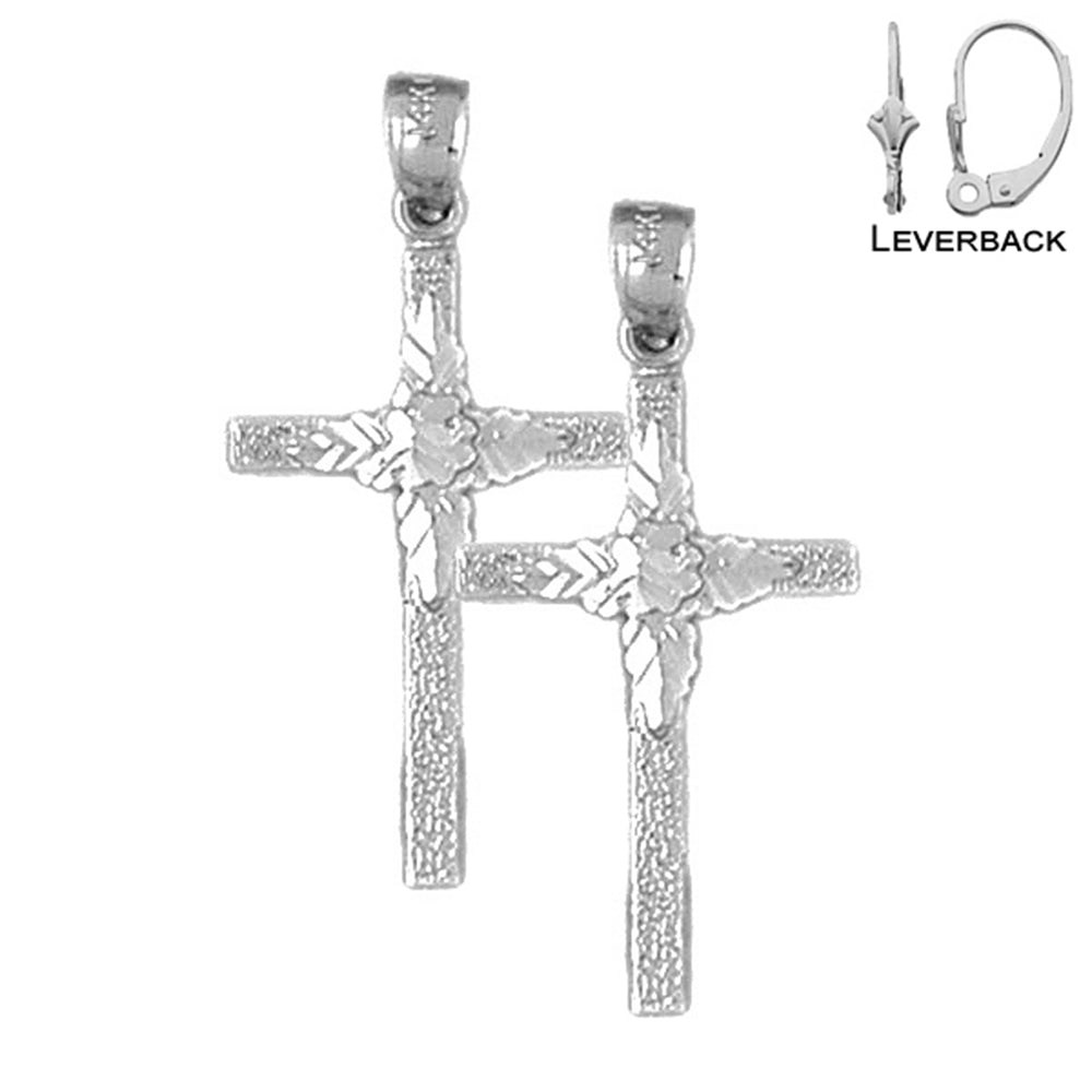 Sterling Silver 31mm Floral Cross Earrings (White or Yellow Gold Plated)