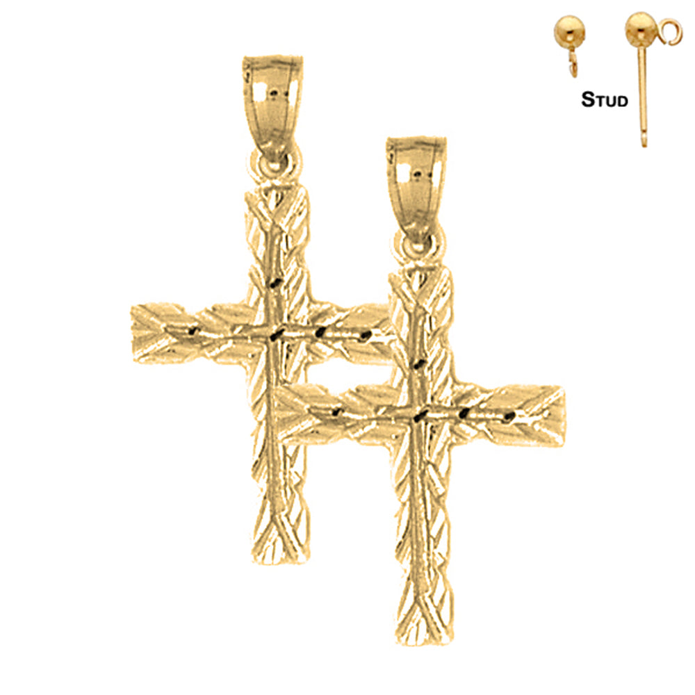 Sterling Silver 31mm Latin Cross Earrings (White or Yellow Gold Plated)