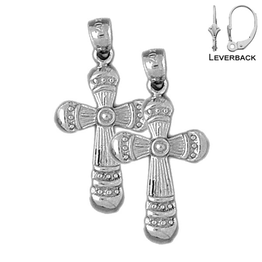 Sterling Silver 31mm Latin Cross Earrings (White or Yellow Gold Plated)