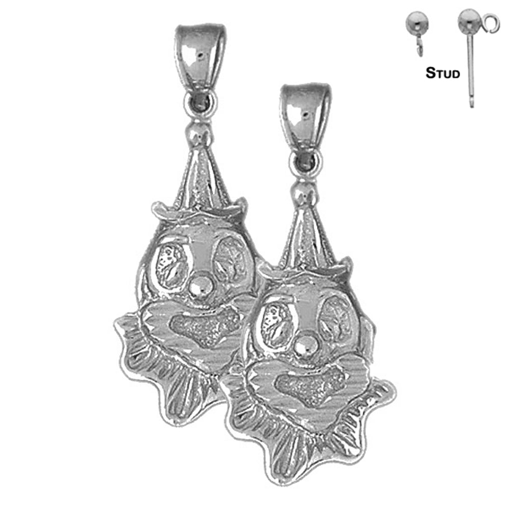 Sterling Silver 32mm Clown Earrings (White or Yellow Gold Plated)