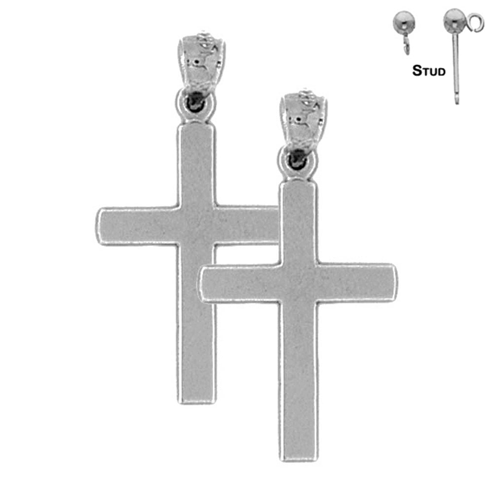 Sterling Silver 32mm Latin Cross Earrings (White or Yellow Gold Plated)