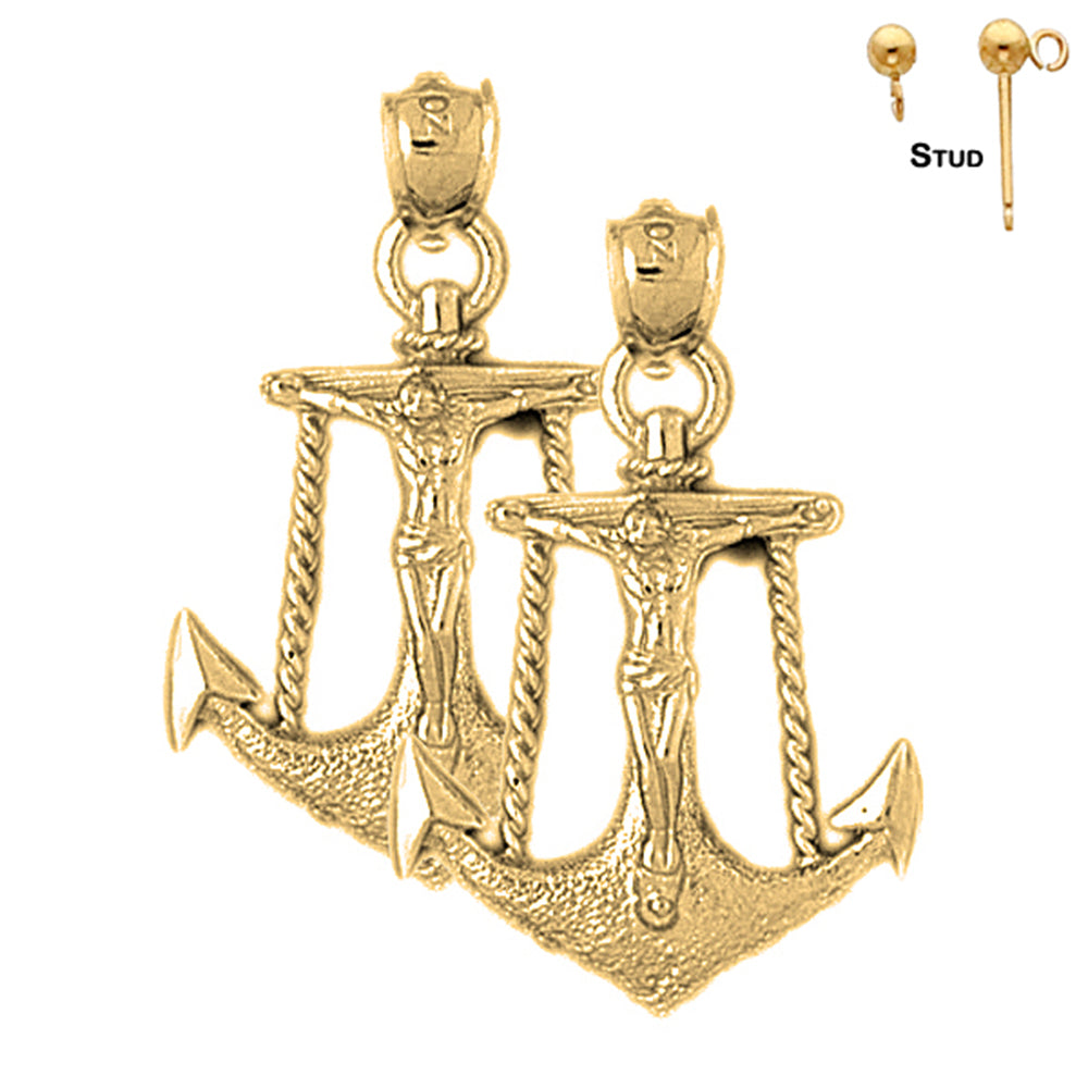 Yellow Gold-plated Silver 32mm Mariners Cross/Crucifix Earrings