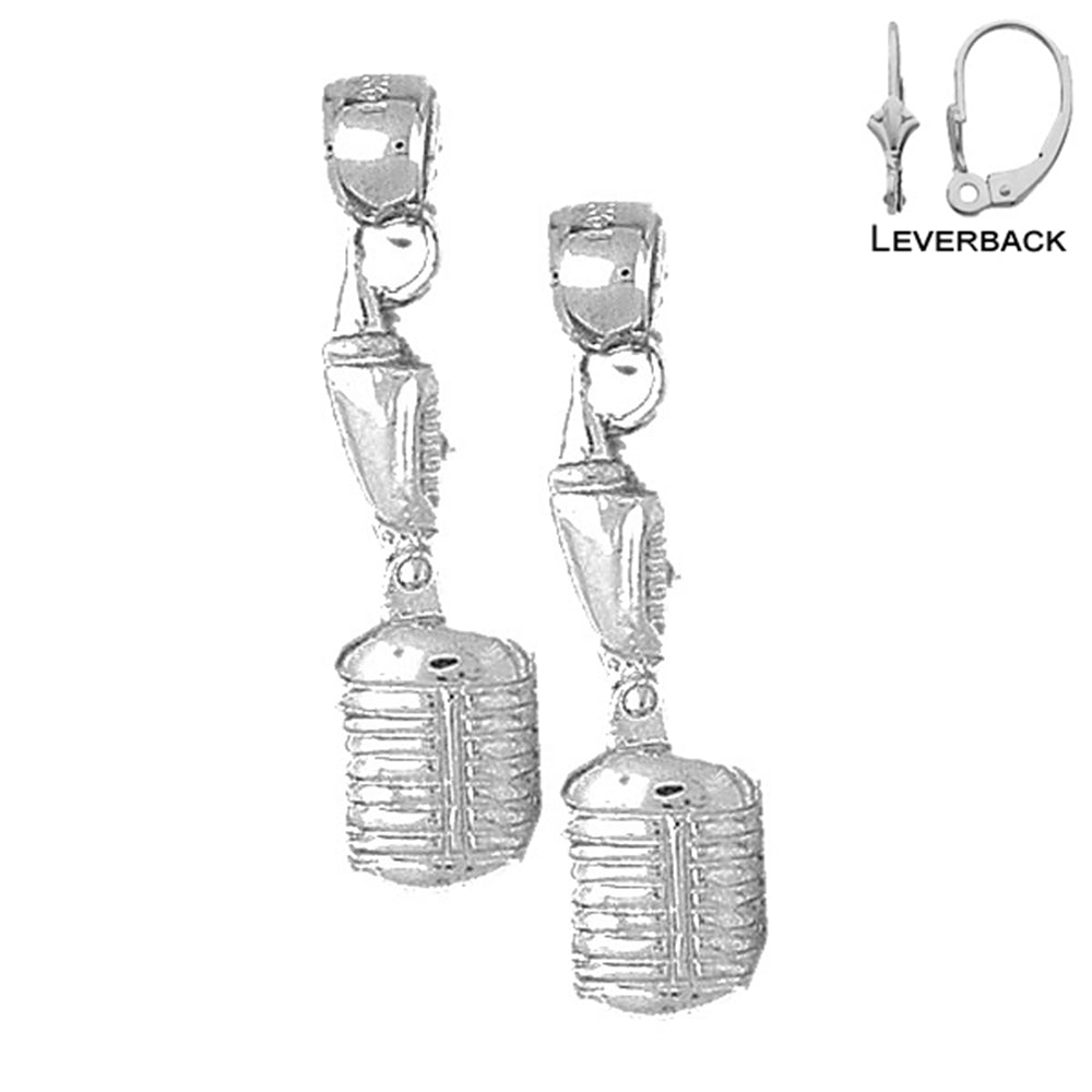 This is a beautiful sterling silver 32mm microphone earrings. This sterling silver earrings measures 32 mm in length by 8 mm width. JewelsObsession creates all our silver jewelry in our state of the art manufacturing facility.