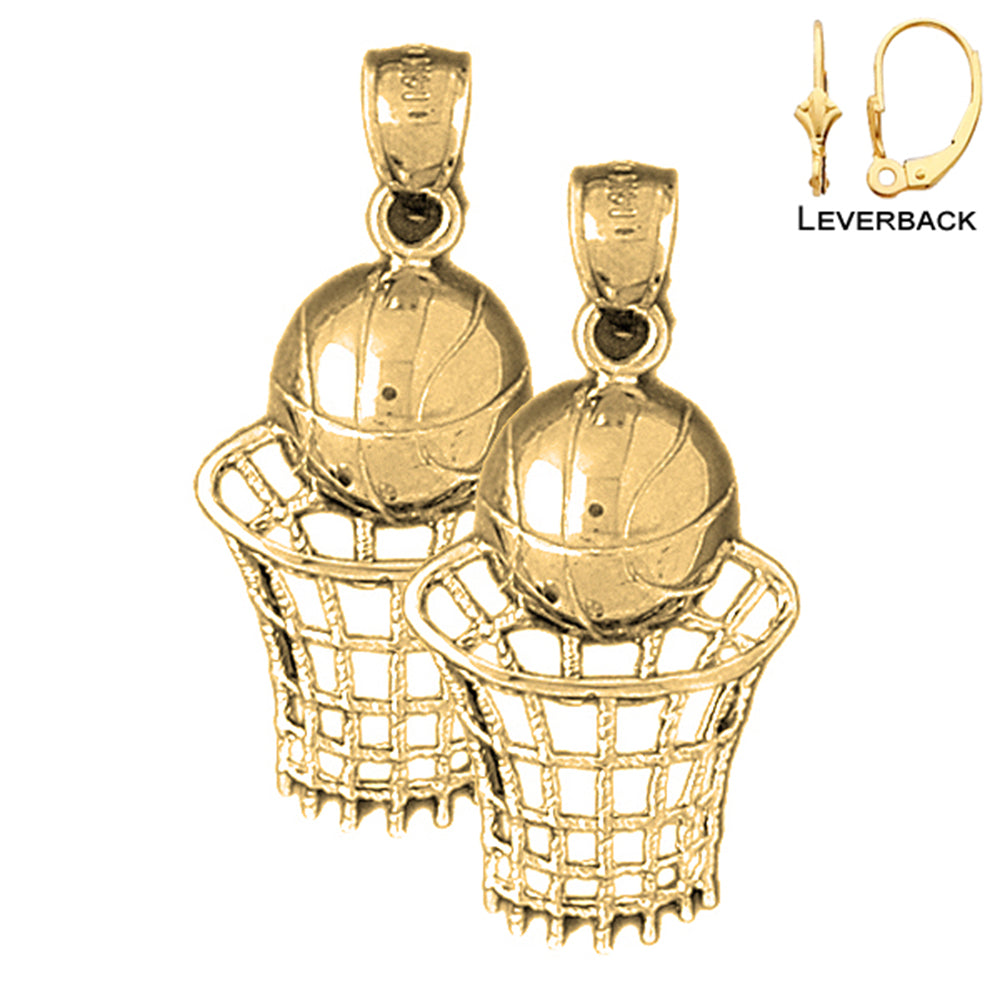 Sterling Silver 33mm Basketball Basket Earrings (White or Yellow Gold Plated)