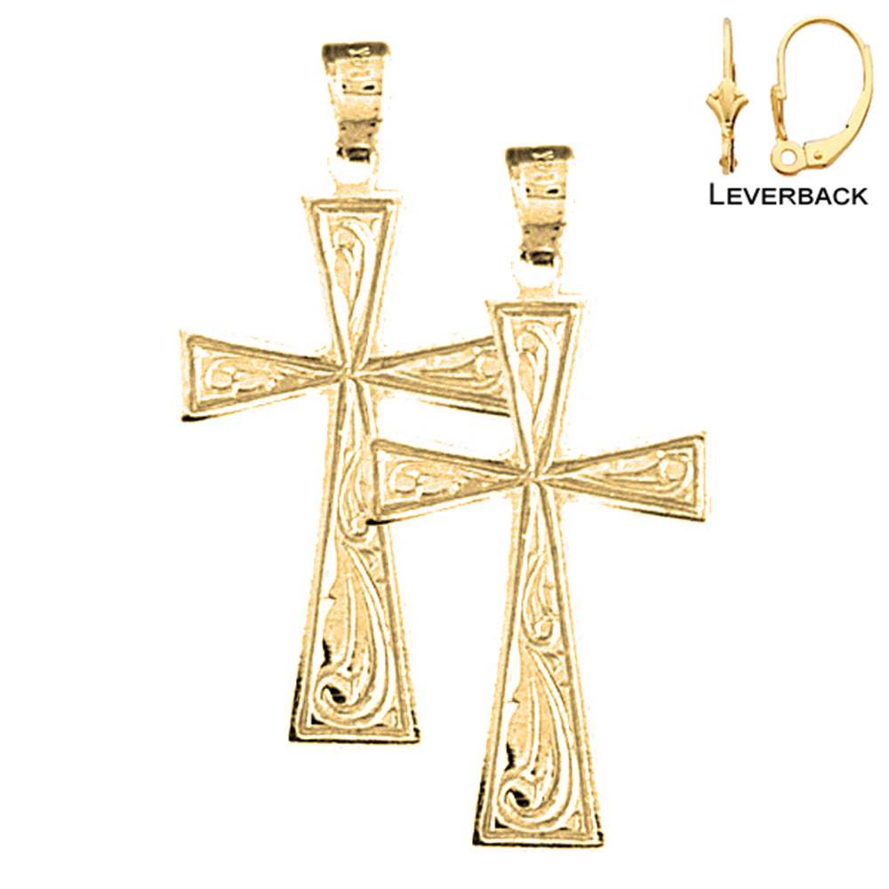 Sterling Silver 33mm Celtic Cross Earrings (White or Yellow Gold Plated)