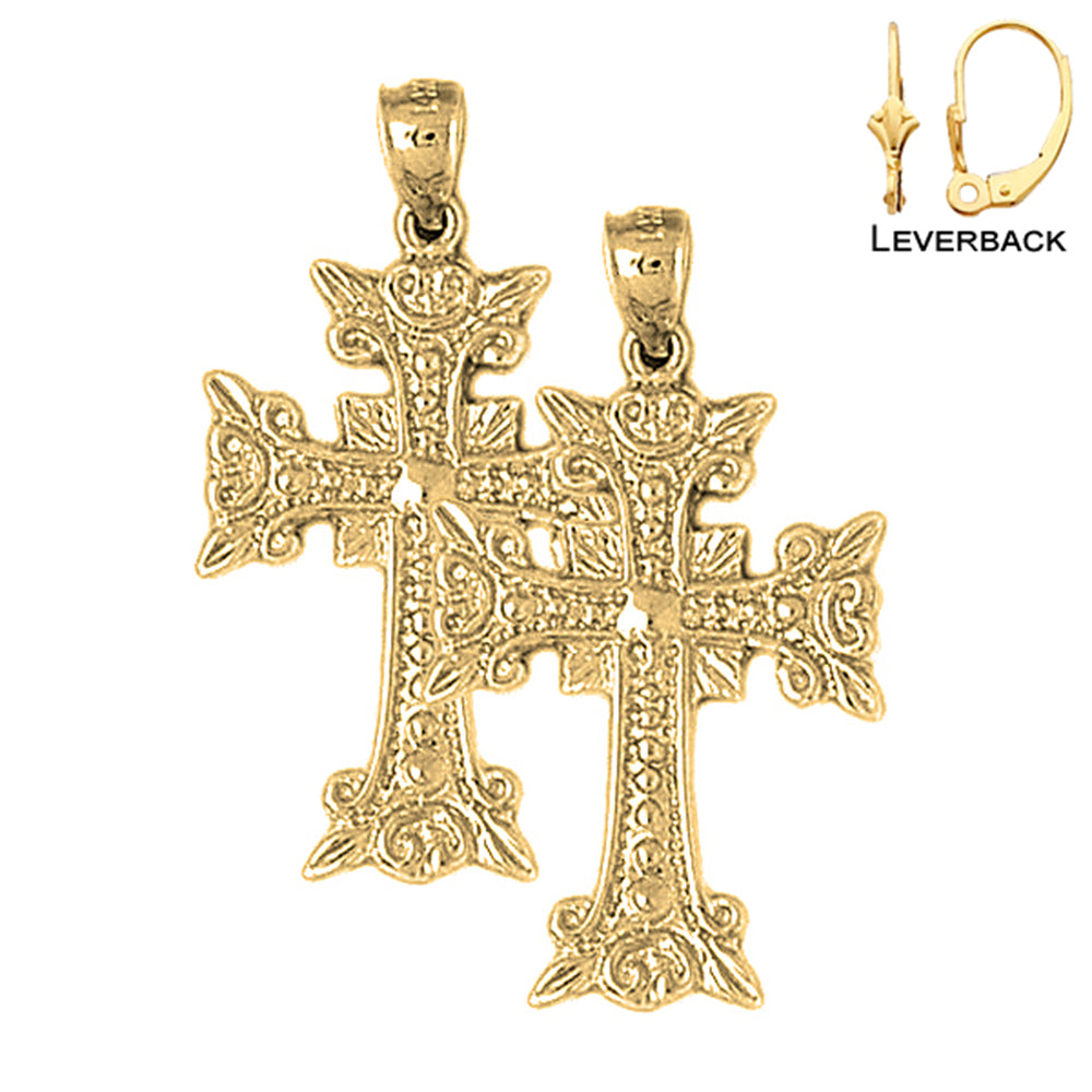 Sterling Silver 34mm Budded Glory Cross Earrings (White or Yellow Gold Plated)