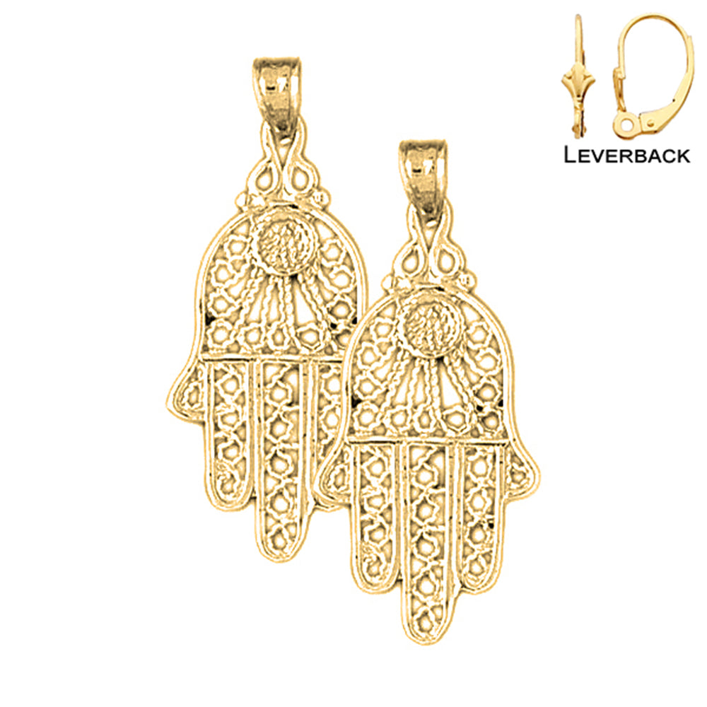 Sterling Silver 34mm Hamsa Earrings (White or Yellow Gold Plated)