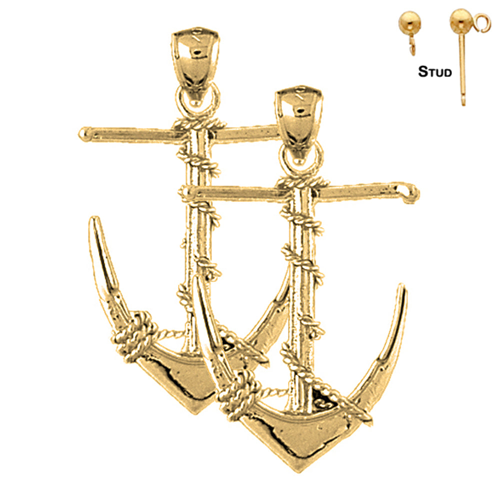 Sterling Silver 36mm Anchor 3D Earrings (White or Yellow Gold Plated)
