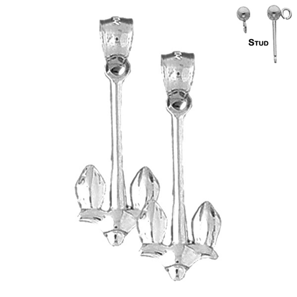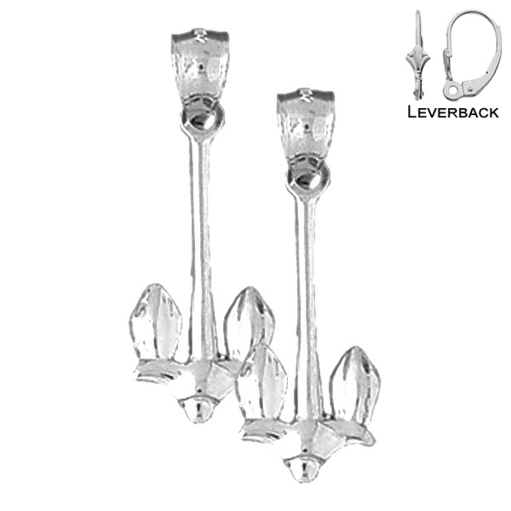 Sterling Silver 36mm Anchor Earrings (White or Yellow Gold Plated)