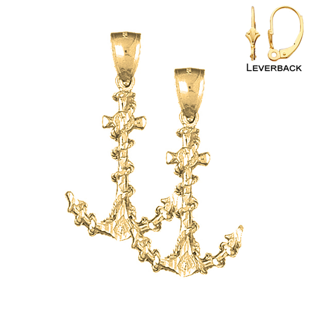 Sterling Silver 36mm Anchor With Rope 3D Earrings (White or Yellow Gold Plated)
