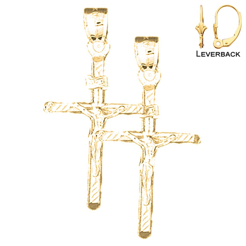 Yellow Gold-plated Silver 37mm INRI Crucifix Earrings