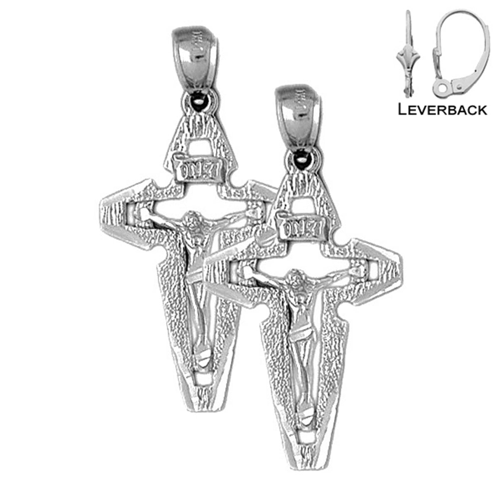 Sterling Silver 39mm INRI Crucifix Earrings (White or Yellow Gold Plated)